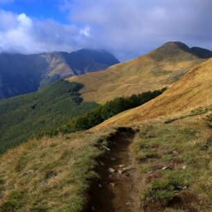 Čeká nás jeden z nejkrásnějších úseků na hřebenovce Apenin. Podzimem nádherně vybarvenou krajinou stoupáme k pyramidě Cima Tauffi (1798 m) a pak perfektně, místy i dost závratně vedeným chodníkem překonáváme několik dalších vrcholů. Nejvyšší vrchol této části hor – 2164 m vysoké Monte Cimone je již na dohled, ale leží v boční rozsoše, a tak není na programu přechodu (stejně to na vrcholu nevypadá nijak povzbudivě – několik vysílačů, stavení).