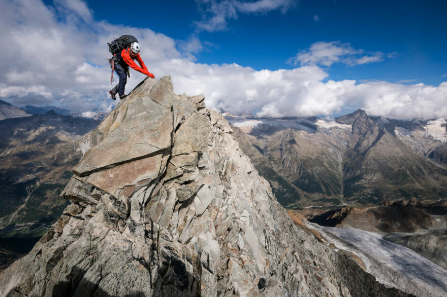 Už výstup od chaty do sedla Bietschjoch vás trochu připraví na to, co vás na této dlouhé túře bude čekat. Zapomeňte na pohodlné stezky nebo vyšlapané dálnice po ledovci. Na tomto kopci se vše točí kolem suťovišť, volných kamenů a až potom, když máte štěstí, i kusu pevné skály. K tomu se na západním hřebeni dostanete až poměrně pozdě. Nejdříve musíte ze sedla překročit krátké úseky rychle mizejících ledovců Bietsch a Nest a poté přes kótu 3408 nastoupit na samotný hřeben. Tam se vine stezička, která má často několik variant a drží se v linii hřebene, tu ovšem odskočí jak do jižní, tak severní stěny. Čím výš se dostáváte, tím začíná být výstup atraktivnější. Nejen lezecky, ale také díky výhledům na Walliské Alpy, které se vám nabídnou na jihu. Dominuje jim pyramida Weisshornu, které sekundují další významné a vysoké vrcholy nad údolími Saas, Matter a Anniviers. Východ slunce na západním hřebeni Bietschhornu nemá chybu.