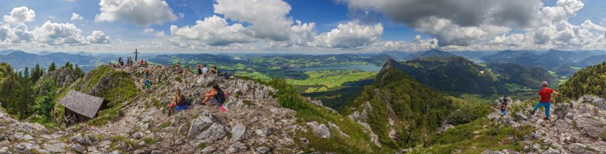 Ani přechod ze Schoberu na Frauenkopf není nic pro slabé nervy. Lehké zajištěné pasáže feraty Schobersteig (A) pokračují lehce exponovaným terénem až k vrcholu Frauenkopf, odkud se otvírá letecký výhled na jezero Fuschlsee.