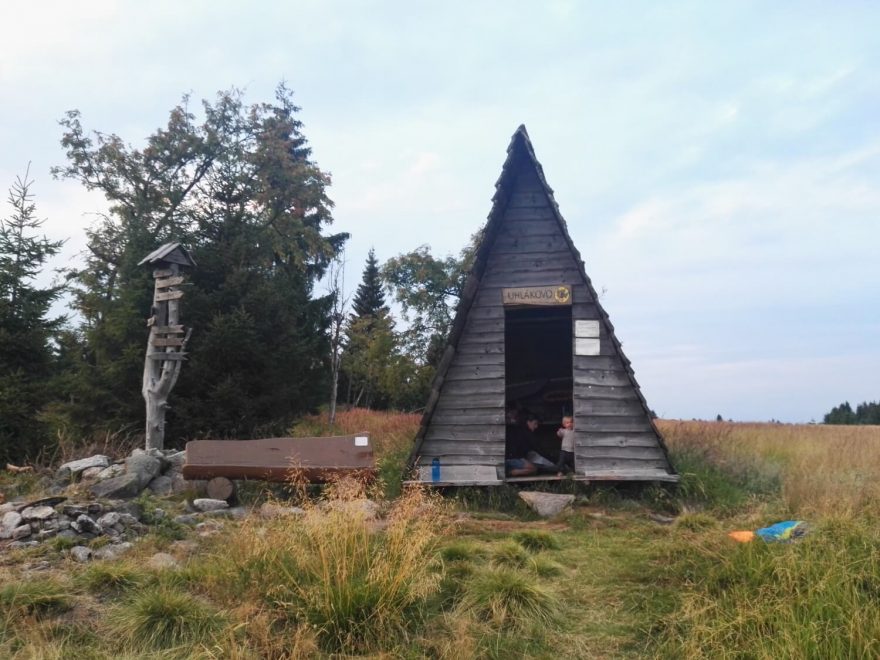 Dnes nás čeká ještě prvních 9 kilometrů přes Perninkské rašeliniště. Nikdy úplně nevěřte tomu, co vám ukáže Google. Místo malebných lávek a chodníčků se prodíráme úzkou lesní pěšinou a přenášíme vozíky přes spadlé stromy. Asi takto vypadá jen malý úsek okruhu. My ale brzy odbočujeme na neznačenou stezku a spěcháme směrem k propadlině dolu Červená jáma. Bistro stíháme těsně před zavíračkou. Nakládaný hermelín, mrkvový dort a pak už jen kousek po neznačené stezce. Brzy rozkládáme ležení na podlaze přístřešku Uhlákovo. Začíná se stmívat. Děti po náročné cestě usínají celkem rychle a my si užíváme nádherné výhledy do okolní krajiny, hvězdnou oblohu a ten klid tady.