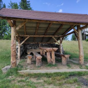 Zatímco se pomalu touláme nespočetnými opuštěnými loukami a obdivujeme okouzlující krásu zdejší živé i neživé přírody, vítají nás další tajemné sochařské výtvory – Trilobit nás zaujme svou přesností, Kameňovník poté svou příjemnou bizarností. Mezi vší architekturou nelze opomenout ani velmi hojné kapličky, kříže či další sakrální památky, jež svou milou skromností poukazují na náboženské tradice tohoto kraje. Po překonání zvlněného, a především lesnatého, úseku nás poslední výstup prvního dne zavádí na nezalesněný plochý vyhlídkový vrchol Kamenité (834 m) s vysílačem a menší Mikovčákovou rozhlednou (samotná rozhledna díky své výšce nicméně výhledy příliš neposkytuje). Při západu slunce potkáváme několik cyklistů a mimo jiné přemýšlíme, z jakého důvodu právě tato oblast není součástí CHKO Kysuce.