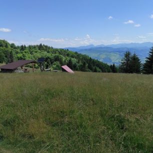 Po povinném odpočinku míříme (od rozcestníku Črchľa již po červené) na Chotárny kopec (906 m), který je nejvyšším bodem v rámci prvního dne našeho putování. Samotný zalesněný vrchol neposkytuje sice žádný výhled, pro odpočinek však opět může dobře posloužit několik dřevěných laviček. Střídavě nahoru a dolů putujeme k rozhledně na Marťáckom vrchu (854 m), z níž jsou nádherné kruhové výhledy na českou i slovenskou stranu hor. Lokalita zároveň nabízí další možnost přespání pod polokrytým přístřeškem (nouzově i ve spodní části kamenné rozhledny, jež je celoročně volně přístupná). Kochajíce se pohledy na krajinu ztrácíme ponětí o čase, a proto na následný vrchol Vrchrieka (861 m) dorážíme po delší časové pauze. Zde místy až filozoficky přemýšlíme nad významem prvního sochařského díla na trase (socha Potvor), nakonec nás však nejvíce baví právě to, že pro každého kolemjdoucího je socha něčím (někým?) jiným.