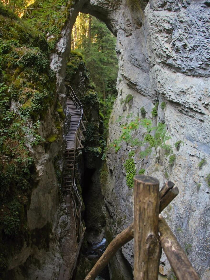 Borino je vesnice postavená na kopci, kde najdeme několik obchodů, takže můžeme na nějakou dobu doplnit potraviny (pečivo) a pak vyrazit na trek. Podotýkám, že celou cestu jsme šli podle aplikace Mapy.cz a vše fungovalo perfektně, vše v reálu odpovídalo mapě a nikde jsme nezabloudili, takže nějakou oficiální mapu ani nepotřebujeme. Abychom dosáhli dna kaňonu, sestupujeme po uzoučké stezičce. Po nějakých dvou kilometrech narazíme v lese na přístřešek s pramenem vody. Stany však stavíme kousek od boudy – je tu řeka, u které jsou pěkná místa k táboření. Hned následující den se trek přes Rodopy dostává do své asi nejdivočejší části. Stezka se nejprve po příliš důvěru nevzbuzujících dřevěných roštech dostává k Ďáblovu mostu, což je impozantní skalní průrva (neplést s podobných Ďáblovým mostem, což je skutečný historický kamenný most na řece, ležící o kus cesty dále). Pěšina se proplétá mezi skalami, stoupá nebo naopak prudce klesá k řece a o vzrušující místa rozhodně není nouze. Nicméně nejedná se o vyložené nebezpečné či neschůdné úseky, která lze v pohodě zvládnout i s objemným batohem. Dobrodružný úsek má svůj konec dosažením silnice v kaňonu Bujnovo.