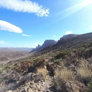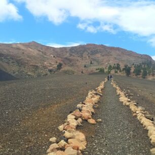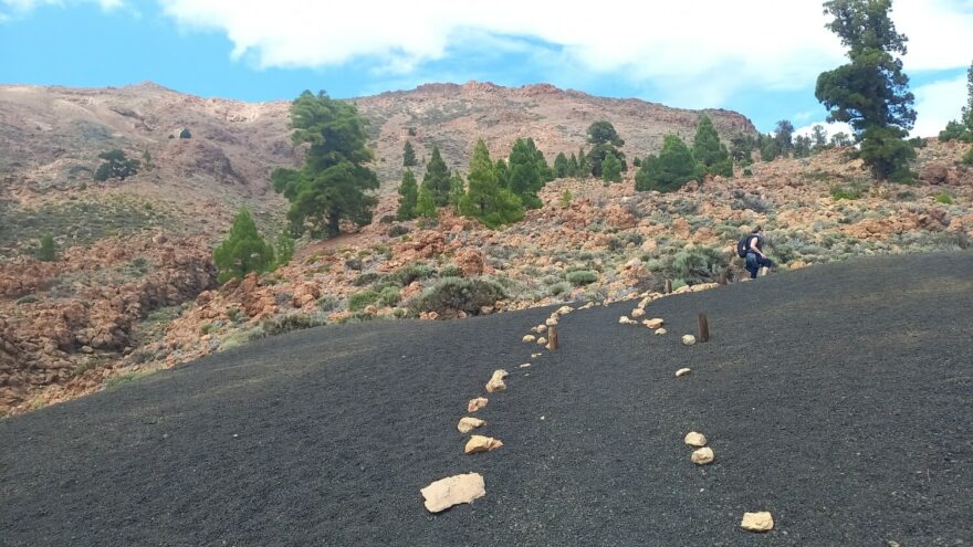 Po svačině na vrcholu a spoustě kýčovitých fotek se vracíme dolů na rozcestí, abychom masiv hor přešli na druhou stranu a sklesali až do městečka Vilaflor. Celá trasa je poměrně dlouhá a je potřeba se připravit na 18 kilometrů se stoupáním okolo 650 výškových metrů. Náročné je i klesání, dolů vás totiž čeká více než kilometr výškový.