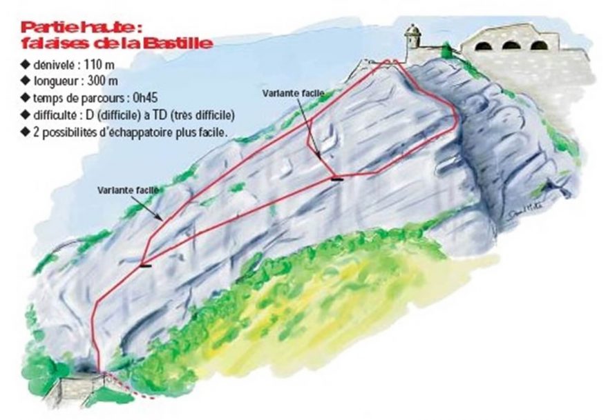 Via Ferrata les Prises de la Bastille je obtížnosti C/D a nabízí krásné výhledy na město „skoro“ bez davů turistů, kteří se valí k pevnosti lanovkou nebo pěší cestou.