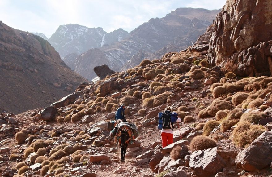 Je únorové ráno a my spěcháme z barevné ubytovny „Rainbow“ nedaleko hlavního náměstí Jemaa El Fna v Marrákeši na zastávku Grand Taxi. Tak se tu jmenují malé dodávky, fungující na kratší vzdálenosti stejně jako ruské maršrutky. Čeká nás 65 km do horské vesnice Imlil (1740 m), kde začíná výstup na nejvyšší horu severní Afriky – Jebel Toubal. Malá horská vesnička je závislá na turismu, a tak je letos už i poslední úsek cesty pokrytý asfaltem. Hlavní ulice, strmě se zvedající do údolí, nabízí nepřeberné možnosti koupě nebo půjčení horolezeckého a kempingového vybavení. Mají tu snad všechno až na plynovou kartuši s VAR závitem. Nakonec ale seženeme i tu, i když za přemrštěnou cenu.