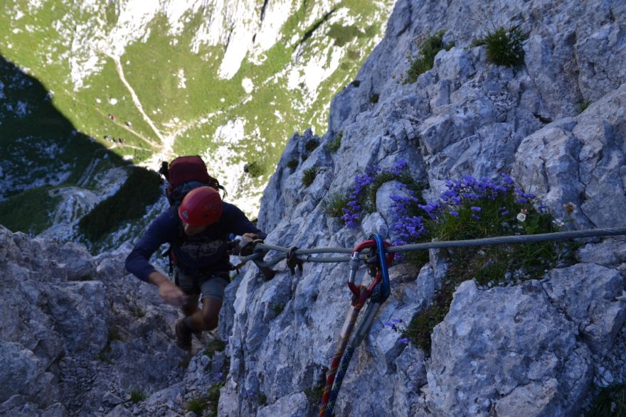 Před výstupem pečivě sledujte počasí, Triglav často přitahuje bouřková mračna a dolů jinudy než po feratě (=hromosvodu) neslezete.