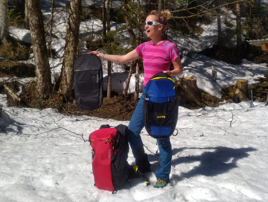 Velikostní varianty jsou barevně odlišené a záleží jen na předpokládaném výletu, který z nich bude použit. „Batoh Pieps BT je dodáván s třemi variabilními rozšířeními úložného prostoru, podle toho kolik vybavení potřebujete sebou, neboli jestli jdete na jednodenní nebo vícedenní výlet. Využila jsem střední volbu v modré barvě BT25, což odpovídá objemu 25 L, protože jsme na Aljšce plánovali jen jednodenní výlety. Další volbou jsou zipsovatelné schránky na 35L v červené barvě nebo minimalistická verze 10 L v černé barvě,“ shrnuje své zkušenosti z Aljašky Klára Kočarová- Pehová.