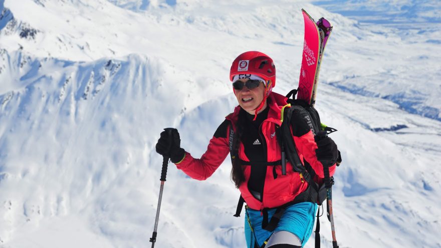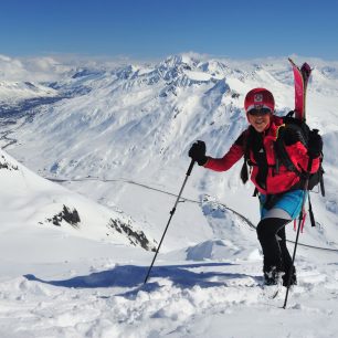 „Batoh má vše co je nutné, síťku na přilbu, poutko u pasu na karabinu a hlavně záchytný systém na upevnění lyží pokud s nimi musíte stoupat připevněných na batohu. Tato přezka na lyže je pěkně vyřešená a je možné ji schovat do malé zipsovatelné kapsičky. Poutko na cepín bylo řešeno minimalisticky a trochu mě zlobilo, protože nebylo pevně přišito, ale jen provléknuto, takže jsem jen několikrát vytáhla z tunýlku, kde bylo umístěno, a jednou málem ztratila,“ říká po zkušenostech z Aljašky Klára Kočarová-Pechová.