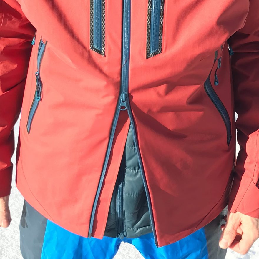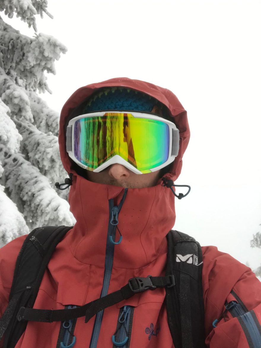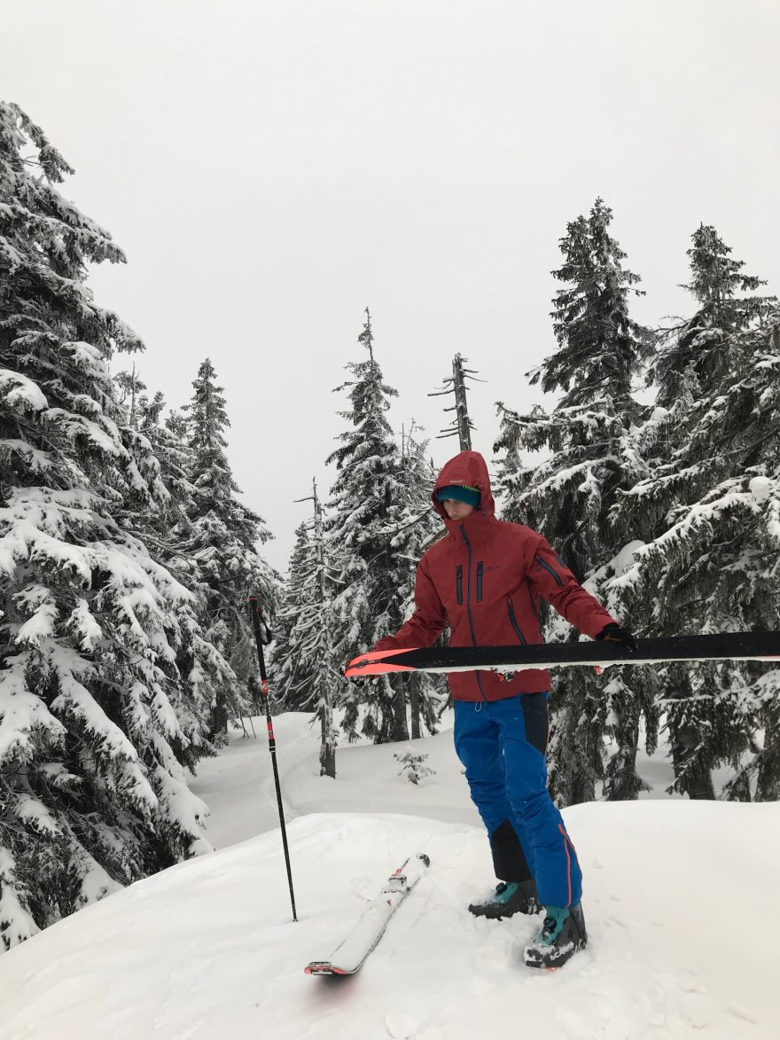 Skialp – prodyšnost 10 000 mm za 24 h na m2 není na dnešní poměry nic moc, délka ventilačních zipů je pouze 25 cm. Z tohoto důvodu jsem jí při výstupech odkládal často do batohu a vyndával až těsně pod hřebenem.
