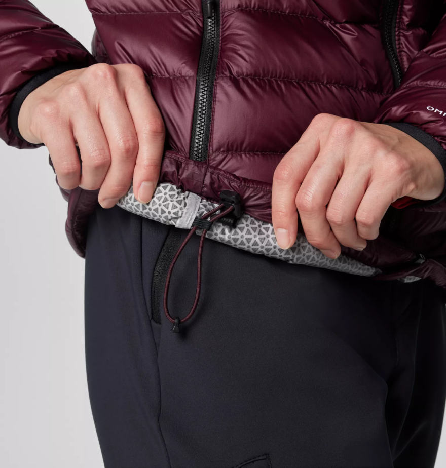 Výplň je tvořená husím peřím (700 cuin, 90 % peří, 10 % prachového peří), které je známé svou vynikající schopností poskytovat přirozenou tepelnou izolaci v kombinaci s nízkou hmotností. Při stlačení je i daleko kompaktnější než třeba syntetické výplně, takže bundu lze snadno sbalit do jedné z kapes. Columbia použivá ve svých výrobcích certifikované prachové peří RDS, což zaručuje etické výrobní postupy.