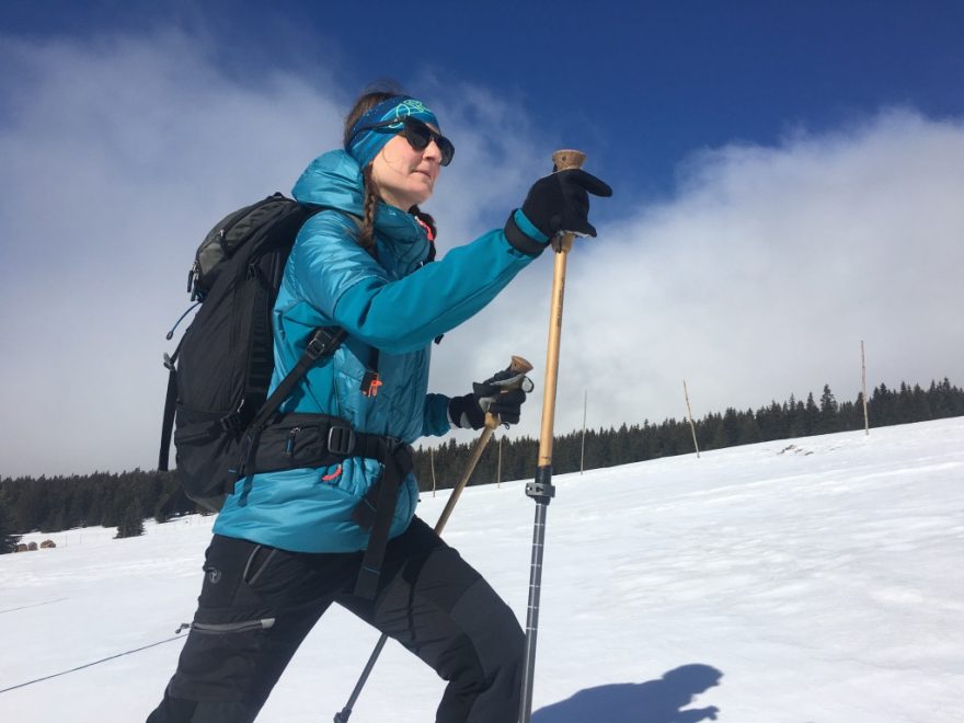 Bunda je určena primárně pro alpské horolezectví a na tzv. stop-and-go aktivity, jako je skialpinismus, alpské horolezectví nebo horolezectví. Tato termoregulační bunda je navržena tak, aby splňovala specifické izolační potřeby různých oblastí těla během aktivit v chladných podmínkách. Já jsem bundu testovala primárně na skialpech a na běžkách a prošla u mě na jedničku, od prvního použití ji všem vřele doporučuji. Nadchlo mě, že mi pod bundu stačilo vzít triko (podle zimy s dlouhým nebo krátkým rukávem) a vydržela jsem bez obvykle nezbytného a otravného oblékání a svlékání až nahoru na kopec, kde jsem na sjezd pod bundu pouze přibrala mikinu.
