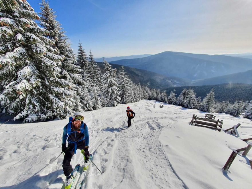 A teď k těm příjemným věcem této lyžáky. Opravdu nadšený jsem byl ze svobody pohybu, které boty dovolují. 60° rozsah kloubu je velkorysý k protažení kroku a v mém případě s krátkými nohami to platí dvojnásob. Nízká hmotnost bot se projevila hned první výšlap po výměně starých skialpových bot na nejvyšší vrchol Moravskoslezských Beskyd, a to osobním rekordem.