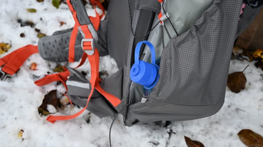 Boční kapsy na batohu jsou objemné a pojmou v klidu lahev 1,5 l nebo bundu či podobně velké vybavení. Přístupné jsou i při nasazeném batohu. Stahování se děje pomocí elastického kordu. Povolování je již problematické a je nutné šáhnout do kapsy a najít malý plastový díl a ten uvolnit. Z boku je kapsu ještě možno extra zajistit háčkem do poutka. Čelní kapsa je přesně ta kapsa, kam dáváte všechno to vybavení, které se vám nechce dávat do batohu: zateplovačka, svačina, čepice či rukavice. Vstup do této kapsy je pouze se shora a vstup je jištěn elastickým kordem bez stahování – okraj je pouze napružen.