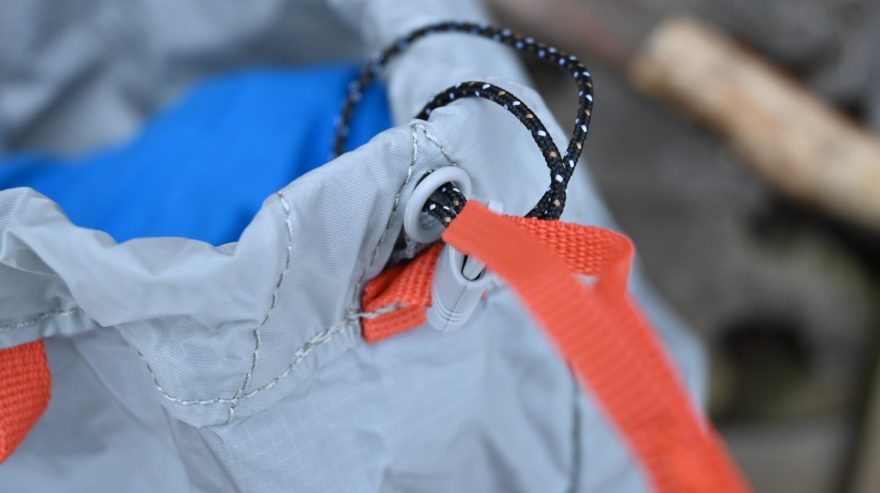 Batoh nabízí hned dva vstupy do batohu. Jeden klasický – horní s jednoručním stahováním. A čelní zipový vstup s dvě jezdci. Takže můžete bez nutnosti otevírání batohu se dostat k uloženým věcem v něm. Toho jsem během testování využívala hojně a mám to ráda i u dalších batohů, které používám. Horní zip s extra dlouhým táhlem je jištěn ještě popruhem se cvokem tak, aby se zip za žádných okolností nerozjížděl. Celé víko ještě můžete zajistit popruhem, které může sloužit například na fixaci bundy či lana přes batoh.