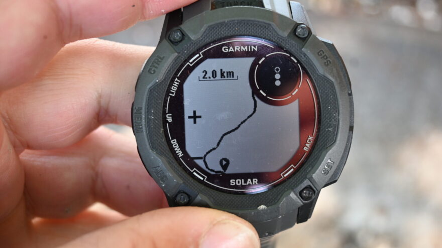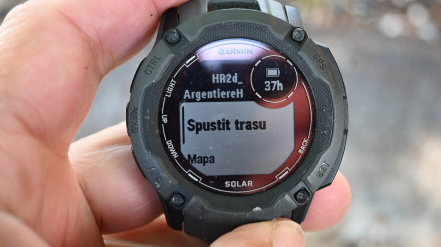 Za mě je u takových hodinek nejdůležitější funkcí navigace. Proto si takové hodinky vlastně pořizuji. Jinak můžu mít na ruce jakékoliv jiné třeba natahovací hodinky s ručičkama a datumovkou. A samozřejmě využívám záznam aktivit – to dá rozum. Doporučuji si před výpravou všechny způsoby navigace vyzkoušet, a to klidně okolo domu: Nechat se sledovat, Vytvořit si Projekt. TB, Track back po prošlé trase během aktivity, Projít prošlé trasy, Navigovat k uloženým bodům atd. U modelu Garmin Instinct 2X Solar nepočítejte s mapovými podklady, ale pouze s monochromatickým displejem a trasou ve formě přerušované čáry. Začátek, body po trase a cíl je označen symboly. Vy jste malá šipečka na nebo mino trasu. Tuto „schématickou“ mapku můžete během pohybu „zoomovat + i -, nebo se pohybovat na displeji do 4 stran.