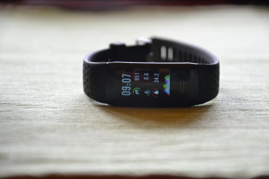 Náramek na první pohled zaujme povedeným designem ve sportovním stylu. Černé plastové jádro s displejem plynule přechází do pásku, který má vroubkovaný vzor. Zajišťuje se klasickým hodinkovým zapínáním, ke kterému se vrací většina výrobců. Nošení je příjemné, takže nemám problém ho mít neustále na ruce. A to díky i plné vodotěsnosti dle normy IP67. Senzor na měření tepu je lehce vystouplý, ale nepřekáží. Displej je barevný a vypadá pěkně, jedinou výtku bych měl k čitelnosti na přímém slunečním světle.