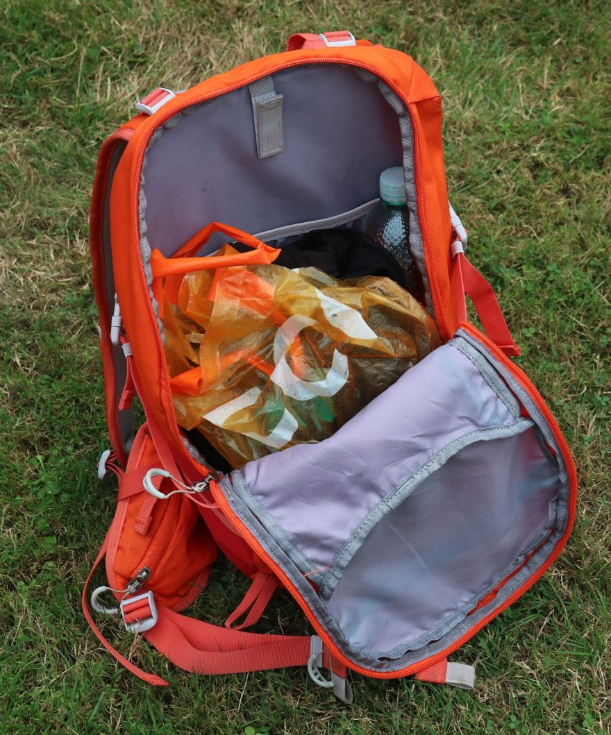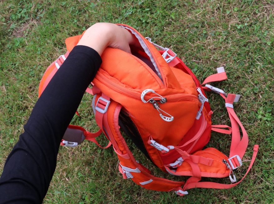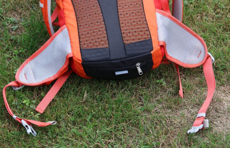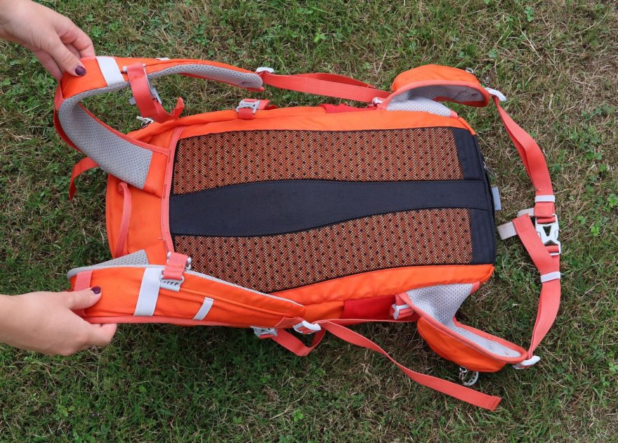 Oranžový batoh se šedým polstrováním ramenních popruhů a bederáku, stejně jako s doplňky má typickou jednokomorovou konstrukci s několika uzavíratelnými nebo otevřenými kapsami. Výrobcem uváděný objem 25 litrů je možné navýšit využitím bočních síťovaných kapes a rozměrné kapsy v čele batohu.