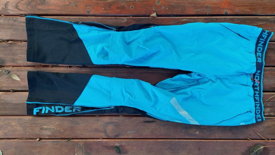Osobně bych nazval střih „regular“. Nejedná se tedy o závodnickou kombinézu, avšak ani o volné kalhoty alá SNB. Díky rozepínání ve spodní části se dají přetáhnout přes vysoké nebo skialpové boty. Padání sněhu do bot zabraňuje elastický klín. Kolena jsou anatomicky střižená. V pase je 5 cm široká guma s nápisem NORTFINDER. Stahování je řešeno elastickou šňůrou se samosvorkou. Celému střihu pomáhají kompletně elastické materiály.