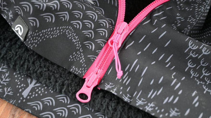 Na první pohled zaujme dvojice zipů. Hlavní spirálový zip je celopropínací a dovoluje oblečení či vysvlečení sukně i s lyžemi, sněžnicemi či mačkami na nohách. Zip je navíc zajištěn v pase i cvokem. Na pravé straně je 20 cm dlouhý zip v rozparku, který zlepšuje rozsah při šlapání či běžkování. Táhlo zipu již není opatřeno prodlouženým táhlem a pro ovládání bylo zpravidla nutné sundat rukavice. Táhlo je však „překlapávací“ a zajišťuje polohu jezdce na libovolném místě a neodstává.