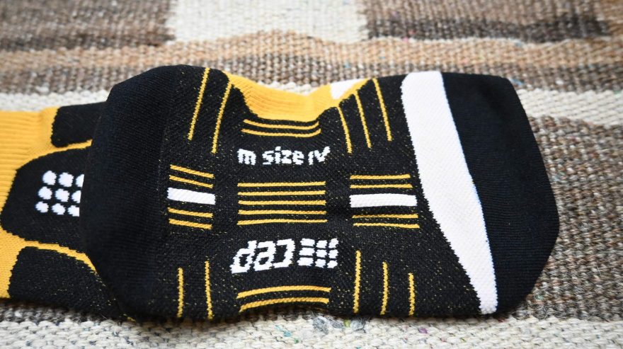 Na tom, aby se vaše nohy cítily jako v bavlnce, má zásluhu hned několik věcí. Kompresní podkolenky CEP LIGHT MERINO jsou příjemné na nošení a docela snadno se navlékají. Šev přes prsty nikde netlačí, v botě o něm nevíte. Horní lem příliš nestahuje, ale zároveň nedovolí, aby vám podkolenky sklouzávaly. Zesílené polstrované části v oblasti prstů chodidla a paty chrání nohy proti otlakům a tvorbě puchýřů. Jsou viditelně odlišeny černou barvou.