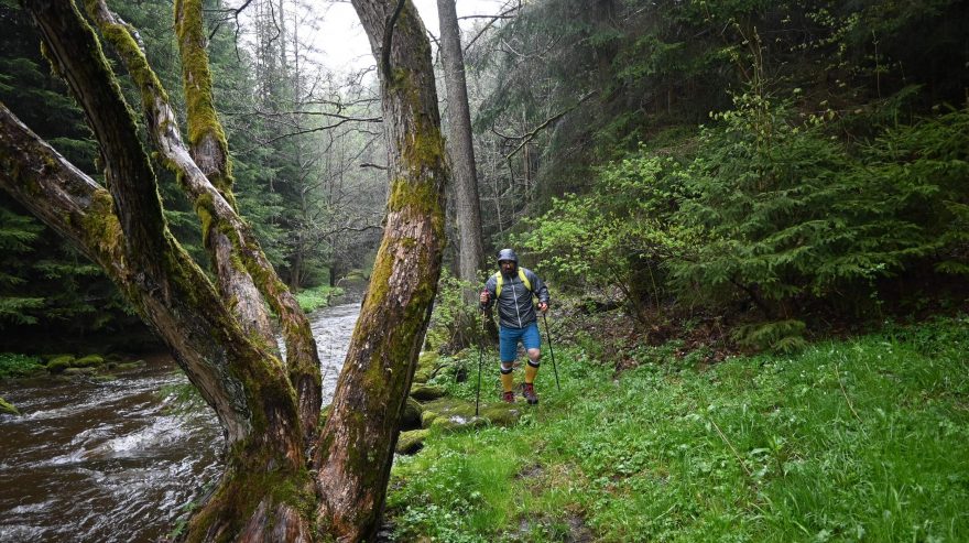 Exponovaná místa jsou zesílena polstrovanými zónami. Horní lem je dostatečně široký a příjemně pružný, takže jsem o něm celý den při túře nevěděl. Navíc zamezuje sjíždění podkolenek tak, že například ani během celodenního šlapání jsem si je ani jednou nemusel natahovat zpět. Komprese je citelná, ale ne nepříjemná. Dodává pocit jistoty a chuť šlapat dál. Pomáhala i mi při dlouhých sestupech, kdy citelně zabraňovala otřesům lýtkového svalu.