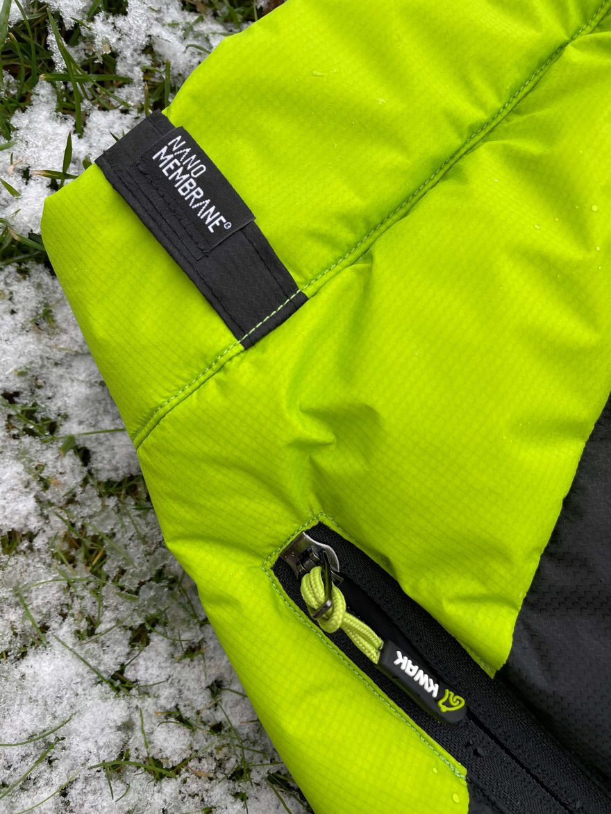 Použitý vnitřní materiál NYLON KWAK 20D Ultra Light RipStop Shell (38 g/m2) je na dotek velmi příjemný, např. kolem krku u vysokého límce se to velmi hodí.