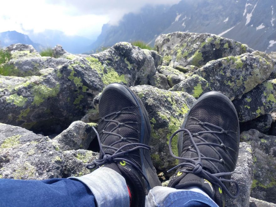 Chůze po rovině i v kopcích je pohodlná a odvalování došlapu mě bavilo. Hmotnost 360 g na jednu botu je oproti koženým nástupovkám velice příjemná a určitě pomáhá k rychlejšímu kroku.