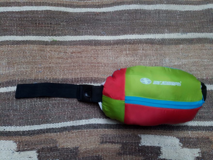 Kapsy na ruce jsou zateplené a zapínají se odshora dolů. Jsou super velké a hluboké. Nebál jsem se, že by mi z nich něco vypadlo. Náprsní kapsa na levé straně pojme i velký telefon. Vstup je sice menší. Efektivní délka zipu je cca 12 cm, ale vnitřní prostor kapsy je dostatečně velký na navigaci, buzolu či telefon. Jezdce zipů YKK mají dlouhá táhla a dají se tak ovládat i v silných rukavicích. Levá spodní kapsa sloužící po otočení naruby jako skladovací prostor do nějž můžete celou bundu nacpat. Drobným detailem je i poutka pro zavěšení takto zabalené bundy.