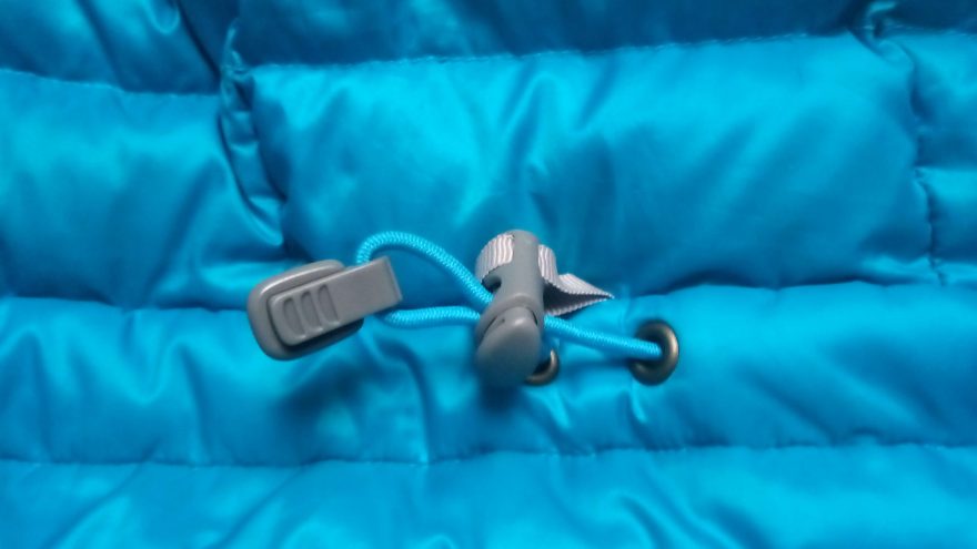 Kapuce je též zateplená. Dobře sedí na hlavě. Stahování je velmi jednoduché a parádně funkční. Žádné tkanice, které se vám motají před obličejem nebo vás ve větru mlátí do ksichtu. Celé stahování je vyřešeno jedinou samosvorkou a pružnou tkanicí. Sir Joseph naštěstí zvolil větší samosvorku, takže se dá v pohodě nahmatat a ovládat. Její stahování i povolování mi přišlo jednoduché a funkční. I při stažené kapuci a zapnutém límci máte krk v teple, protože ve společné kombinaci tvoří okolo krku teplý límec, který přiléhá.