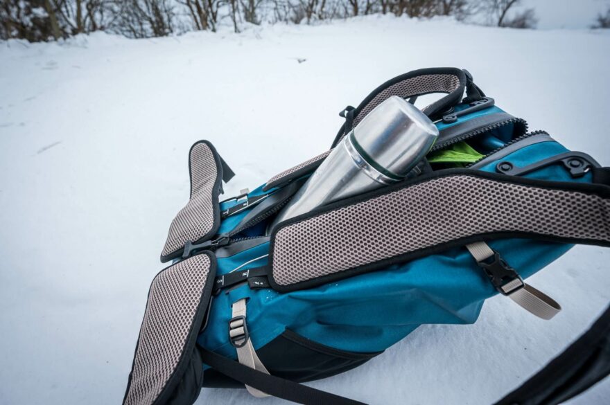 Verze BP má bederák řešený jednoduchým popruhem, což bohatě stačí, aby byla zajištěna pozice batohu na zádech. Oproti tomu v turistické verzi Atrack disponuje plnohodnotným bederákem, bez kterého by to nešlo – když se 45 litrů naplní, hmotnost už je pořádně znát. Ani tak ale díky propracovaným ramenním popruhům, bederáku a zádovému systému batoh nijak nepřekáží pohybu. Pohodlně se nesl i během dvoudenního přechodu na běžkách, a to i když jsme bruslili nebo si užívali komplikovaný sjezd v terénu.