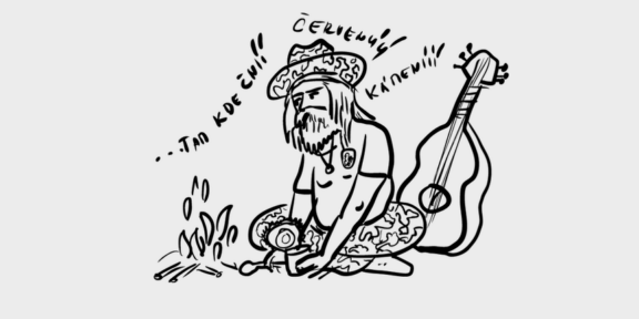 Usárna nebo tele, to je jedno, důležitá je čutora, maskáče, kanady, celta, očouzený rendlík, kytara, a vlastnoručně přišitý znak s českým lvem. Rád popíjí rum pod pískovcovým převisem za zvuku praskání dřeva. Je mu fuk, kolik ujde, důležitý je počet otevřených jeleních konzerv. I když zapáchá kouřem, nebojí se na autobusových zastávkách oslovovat lidi, kteří o hovor s ním nestojí.