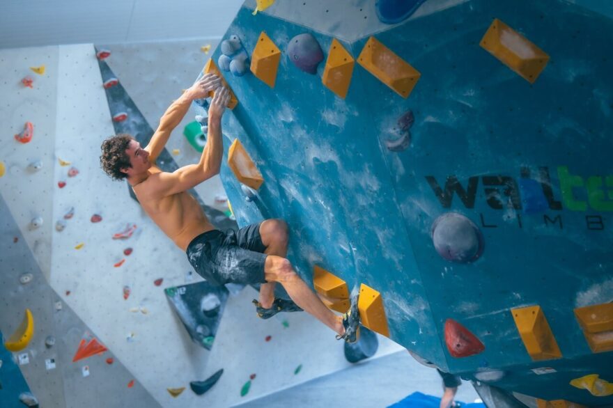 Kondiční cvičení jsou většinou intenzivní, ale relativně krátké, okolo půl hodiny. Cvičení s vlastní váhou nebo s malou zátěží na TRX, hrazdě, různé variace na kliky a tak dále. Je to spíš zaměřené na určitý energetický systém. Takže někdy je to opravdu na to, abych se udržel v tom aerobním pásmu, někdy je to naopak krátký, intenzivní, co nejvíc laktátový trénink. Když to takhle sečtu, řekl bych, že v rámci dne mám tréninky většinou tří až čtyřfázové. Někdy jsem na stěně půl hodiny, pak si půl hodiny odpočinu a dám si další fázi. Rozhodně mi vyhovuje to rozfázovat spíš na více fází, než mít jeden čtyř až pětihodinový trénink.