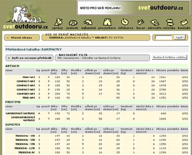 Ke konci března jsme aktualizovali adresáře Světa outdooru nejčerstvějšími údaji získanými od firem v průběhu ledna – března 2002. Celkem tedy nyní najdete na našich stránkách rozsáhlý adresář firem a 17 přehledových tabulek, které v současné době obsahují přes 1700 záznamů o jednotlivých produktech na trhu, včetně jejich orientačních cen.