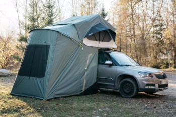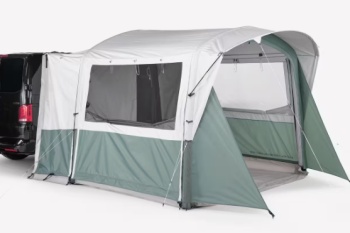 Dalším tuningem pro majitele dodávek může být prostorná předsíň Van Connect s nafukovací nebo prutovou konstrukcí, díky které získáte 8 m² obyvatelného prostoru navíc a pohodlně se tak dovnitř vejde až 6 osob. Pruty jsou barevně rozlišené, a tak přístřešek zvládne postavit i Pat a Mat. Materiál Fresh s faktorem UPF 50 + vás navíc ochrání před sluncem.