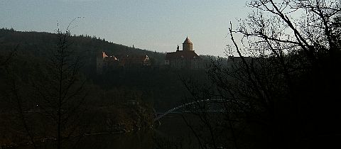 Po čase dorazíte do Helenčina údolí. Ano ano, místní názvy odkazují k Mrštíkově Pohádce máje, jež se v těchto místech odehrává. Za malebným historickým stavením vás bude značka lákat na silnici. Máte zde dvě možnosti. Dát se za modrou po úzké silnici (cca 250m) až pod hrad. Nebo se nepříjemné silnici vyhnout a ve stejném směru pokračovat kolem pravého svahu, kudy vede i drobounká pěšinka. Abyste se dostali k hradu, budete muset přeskočit nízkou roklinku s potokem. Až překonáte tyto drobné nasnáze, nabídne se vám úchvatný pohled na komplex hradu Veveří tyčící se nad vámi.