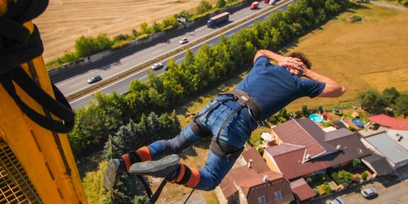 V Praze, Brně, Ostravě nebo Olomouci na vás čeká adrenalin při bungee jumpingu z jeřábu. A to z výšky 50 metrů. Brno pak rovnou nabízí 110metrový skok pro extrémní odvážlivce (a to jak sólo, tak i tandem). Ideální zážitek k překonání sebe sama. Skok z takové výšky je sice také vyšší, ale zážitek to bude pořádně intenzivní.