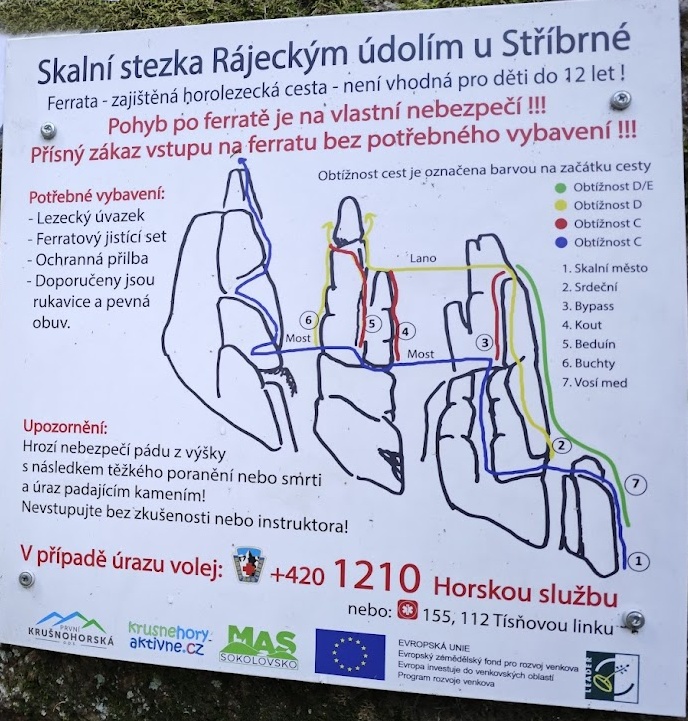 - Parkování: Přímo u feraty – u silnice ze Srbské Kamenice po 1,5 km směrem na Jetřichovice.