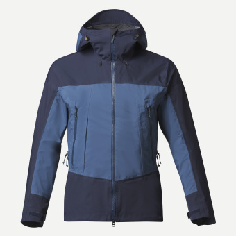 Hardshellová třívrstvá bunda na trek s nepromokavostí 20 000 mm vodního sloupce. Kombinuje odolný materiál (147 g/m², 70 denier) na namáhaných místech, jako jsou ramena, paže, bedra a břicho, a velmi lehký a prodyšný materiál (109 g/m², 20 denier) na zbylých místech.