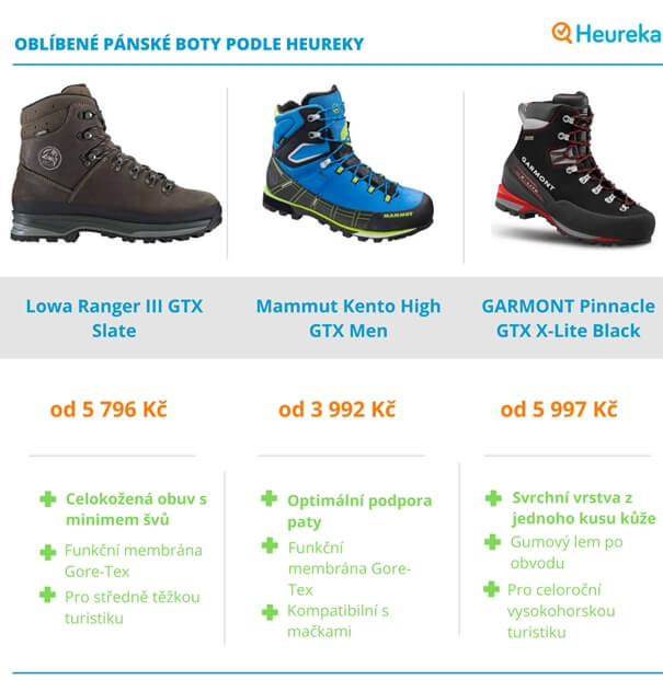 Pánské boty na vysokohorskou turistiku můžete vybírat i z pohodlí svého domova. Stačí se na Heurece inspirovat hodnocením uživatelů a jejich oblíbenými produkty.