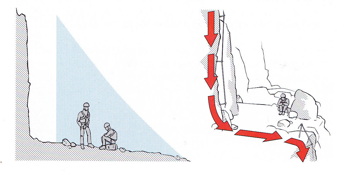 Neschovávejte se pod převisy a do skalních výklenků