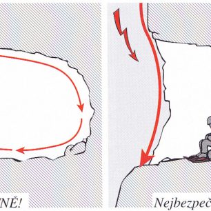 Blesk totiž nekončí tím, že udeří do země. Elektrický výboj, v tu chvíli pro lidské oko neviditelný, si hledá cestu nejmenšího odporu a to přednostně po mokrém povrchu skály. Výklenek jeho vodivou cestu přerušuje a blesk musí pokračovat vpravo nebo vlevo po skále. Pakliže ale ve výklenku stojí člověk, poslouží blesku jako vodivý most, nehledě na to, že blesk při tom přeskočí krátký úsek vzduchem. Cestou nejmenšího odporu se v tu chvíli stáváte vy a ocitáte se v přímém ohrožení života.