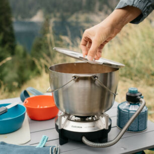 Základem kempingové kuchyně je plynový vařič, který představuje nejpohodlnější a nejefektivnější řešení pro vaření v přírodě. Kartuše jsou snadno k sehnání, vydrží dle velikosti a četnosti vaření i víc než týden a při přepravě nezaberou mnoho místa. U vařiče oceníte zejména stabilitu a kompaktní rozměry, bonusem je spolehlivé piezo zapalování, díky kterému se nemusíte trápit se zatoulaným zapalovačem či navlhlými sirkami. Vařič doplňte sadou nerezového nádobí (nejlépe aby se daly nádoby poskládat do sebe), skládacími hrníčky a lehkými příbory.