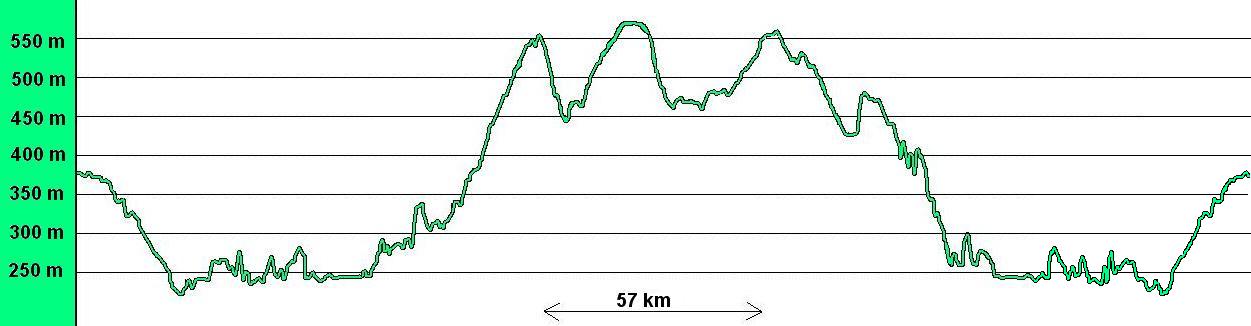 Terén: 2 km nezpevněná cesta, zpevněná cesta 27 km, asfalt 28 km