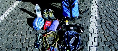 Nutností je správně upnutý sedák, feratový set a helma. Pro případ krizové situace mít mobilní telefon (číslo 112) a lékárničku.