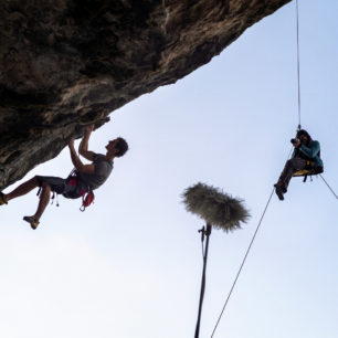 Přejít do galerie„Na počátku vývoje našeho filmu jsme měli možnost strávit tři týdny studiem Adama a jeho osobního i profesního života z bezprostřední blízkosti. Společné cestování na Balkáně, Adamova celodenní dřina v dosud neobjevených skalních stěnách, doprovázená neustálou přítomností televizního štábu a fandícího davu. Kontrast hvězdné image celebrity a obyčejné, tvrdé dřiny introvertního samotáře, který do noci visí uprostřed skalní stěny a čistí si chyty na příští den. Fascinace těmito okolnostmi, stejně jako Adamovým vnitřním světem a jeho umanutostí, byla hlavní motivací k tomu, abychom se pustili se do našeho filmu, intimního portrétu, v němž bychom se dostali dál, za sice pečlivě vykonstruovaný, ale plochý mediální obraz. Při setkání s Adamem na nás udělala silný dojem jeho vazba na rodiče a především přítelkyni, dnes již manželku, Ivu. Rodiče jsou v Adamově úspěchu aktivně vepsáni od nejútlejšího dětství a s Ivou je úzce spjatý jeho život dnes. Sledování olympijských her jejíma očima bylo silným momentem natáčení. Zároveň pro nás bylo důležité neukončit film olympiádou, ale ukázat to, co následovalo po ní, i to, jak se s neúspěchem Adam vypořádal. I když jsme sami také lezci, naším cílem bylo nahlédnout Adama z nelezeckého úhlu pohledu a přiblížit ho tak i divákům, kteří se o lezení či sport obecně nezajímají a těm, kteří Adama Ondru dobře znají, nabídnout novou perspektivu,“ doplňuje Jan Šimánek a Petr Záruba.