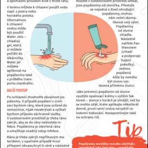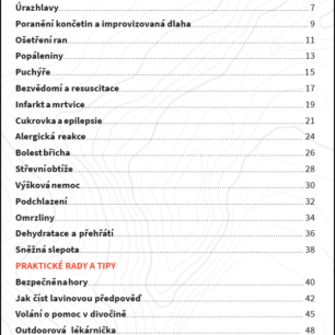 - rady a tipy pro prevenci a přípravu: vybavení lékárničky, pravidla pro bezpečnost na horských túrách, jak přivolat pomoc, jak na transport raněného a mnoho dalšího!