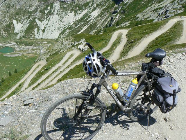 Na opačném úpatí Matterhornu, ve švýcarském Zermattu, jsem se pokusil o výjezd na vyhlídkové návrší Gornergrat (3 131 m), na němž končí vyhlášená horská železnice. Vydal jsem se po cestě, která v horní polovině doprovází koleje zubačky a po níž jsem viděl projet i nákladní automobil, ale už na samém začátku jsem kapituloval v šotolině, přesahující třicet procent stoupání. Zdatnější kolega na dobrém horském kole by možná mohl uspět.