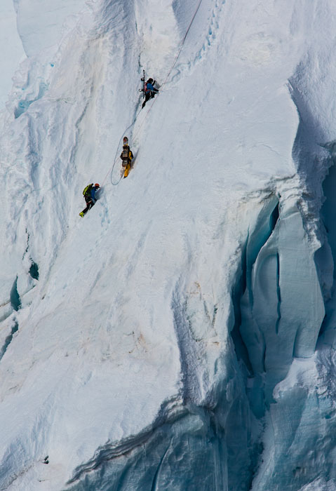 Vyšplhat se na příkré svahy Antarktidy byl tím pádem spíše horolezecký počin. Proto byl součástí expedice další sportovec z řad The North Face, Američan Renan Ozturk, což je expert přes horolezectví1. Lezecké cepíny a šrouby se staly stejně důležitou částí výbavy jako prkno či vázání.