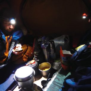Podle něj je na takovéhle výpravě základem být naprosto soběstačný. „Všechno potřebné máme na svých saních – výstroj, výzbroj, prostředky nutné pro případnou záchranu, přesně propočítané množství jídla, a hlavně palivo do vařiče – benzín. Bez něj jste v koncích – nerozehřejete si vodu z ledu a nemůžete se napít ani si uvařit jídlo. V saních máme třeba i chirurgické šití – o přemrzlý led se můžete při pádu ošklivě pořezat. Dál vezeme minimalistické nářadí, takzvané multitooly, na základní opravy saní a vybavení, jejichž porucha by jinak mohla mít fatální následky. Letos jsme táhli na saních každý asi 60 kg materiálu.“
